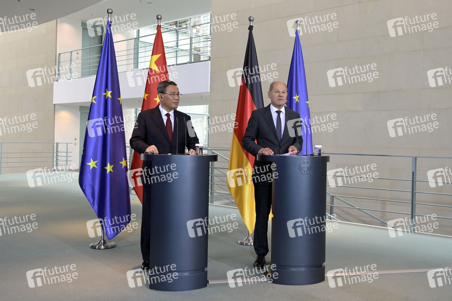 Li Qiang und Olaf Scholz bei der Pressekonferenz zu den 7. Deutsch-Chinesischen Regierungskonsultationen unter dem Titel 'Gemeinsam nachhaltig handeln' im Bundeskanzleramt. Berlin, 20.06.2023