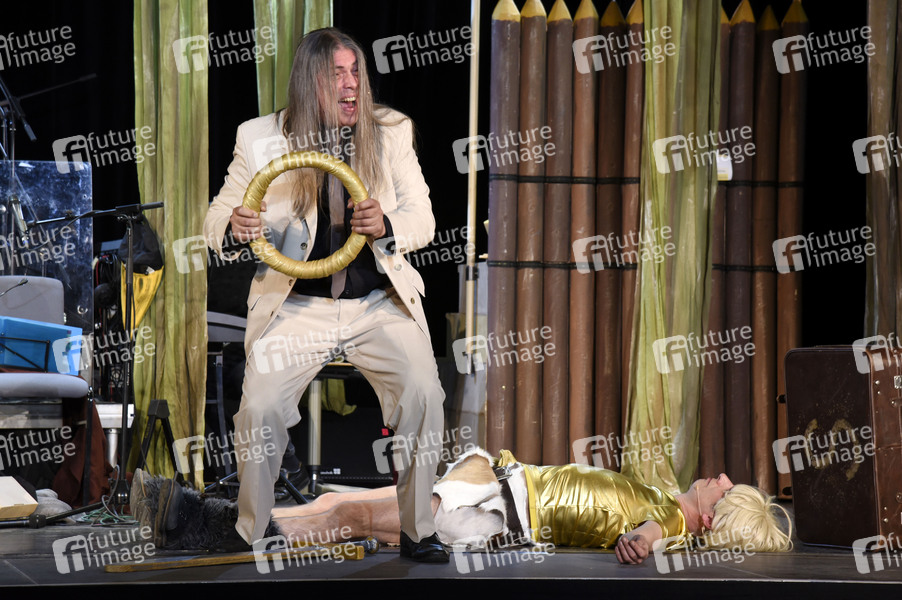 Aron Altmann und Severin Groebner bei der Generalprobe zum Streaming von 'Siegfried - Götterschweiß und Heldenblut, Ein Germanical' im Kleinen Theater. Haar, 07.03.2021