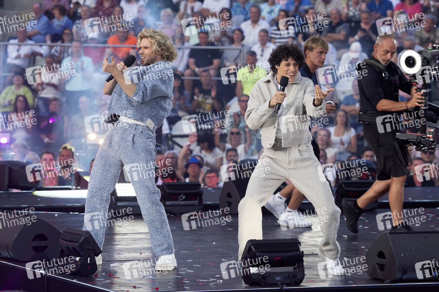 Matt & Sem in der TV-Show 'Schlagerbooom Open Air 2025 - Die Berge leuchten!' live aus dem Stadion Kitzbühel. Kitzbühel, 21.06.2025