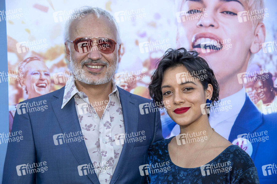 Javier Fuentes-Leon mit Begleitung bei der Eröffnung des 39. Outfest Los Angeles LGBTQ Film Festival mit der Premiere des Amazon Prime Video Films 'Everybody's Talking About Jamie / Alle reden von Jamie' auf dem Cinespia's Hollywood Forever Cemetery. Los Angeles, 13.08.2021