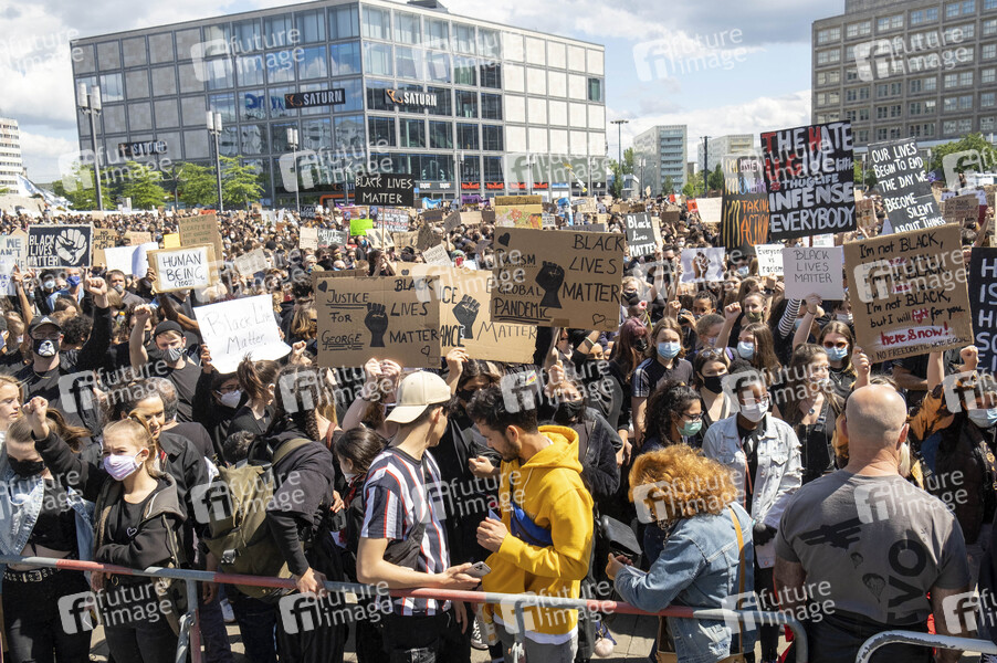 'Silent Demo' gegen Polizeigewalt und Rassismus nach dem Tod des Afroamerikaners George Floyd am Alexanderplatz. Berlin, 06.06.2020