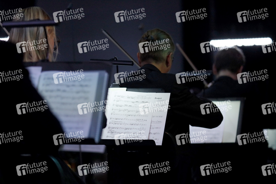 Das Beethoven Orchester Bonn bei der Generalprobe für die von einer KI vollendete 10. Sinfonie Beethovens vor der abendlichen Uraufführung im Telekom Forum. Bonn, 09.10.2021