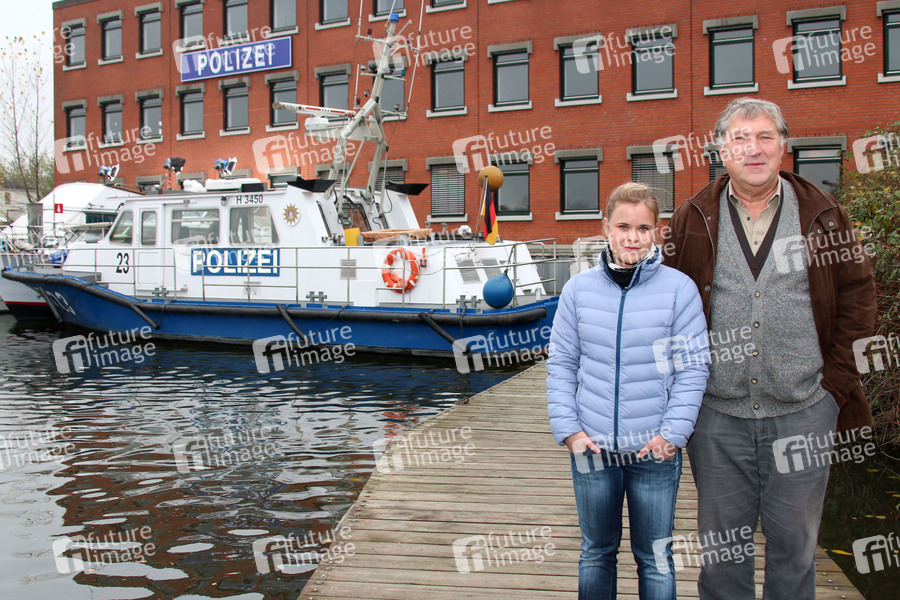 Marie-Luise Schramm und Veit Stuebner beim Pressetermin am Set der ARD Krimi-Serie 'Heiter bis tödlich - Morden im Norden'. Hamburg, 12.11.2013