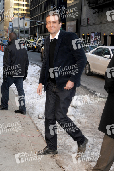 Jason Segel bei der Ankunft zur Aufzeichnung der 'Late Show with David Letterman' im Ed Sullivan Theater. New York, 17.02.2014