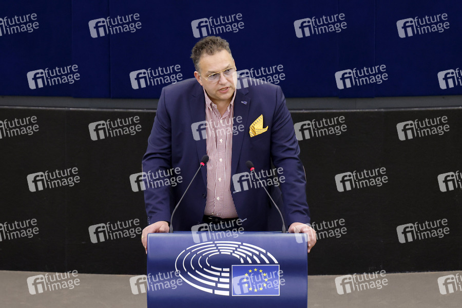 Romeo Franz im Plenarsaal des Europäischen Parlaments. Straßburg, 07.03.2022
