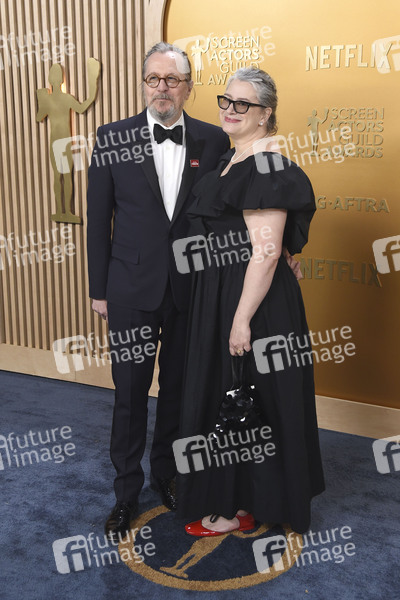 Gary Oldman mit Ehefrau Gisele Schmidt bei der Verleihung der 31. Screen Actors Guild Awards 2025 im Shrine Auditorium and Expo Hall. Los Angeles, 23.02.2025