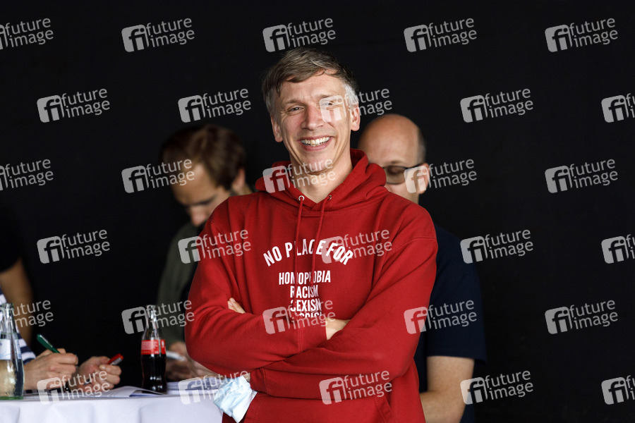 Bastian Campmann von Kasalla bei der Pressekonferenz zum Neustart der Open Air Konzert Saison nach den aktuellen Corona-Vorgaben im Kölner Tanzbrunnen. Köln, 17.06.2020