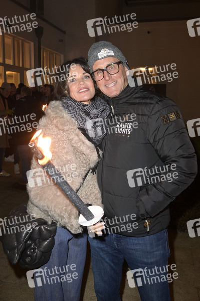 Gerit Kling mit Ehemann Wolfram Becker beim offiziellen Opening der Baltic Lights 2024 mit Fackellauf und Lagerfeuer an der Alex Strandbar. Heringsdorf, 01.03.2024