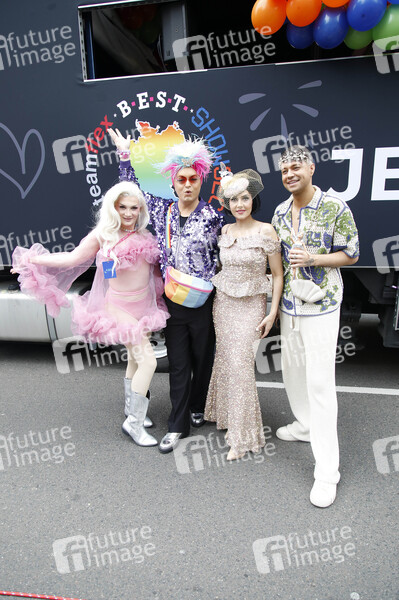 Uff, Julian F.M. Stoeckel, Pauline Stolze und Marcell Damaschke bei der 47. Christopher Street Day Parade 2025 unter dem Motto 'Nie wieder still'. Berlin, 26.07.2025