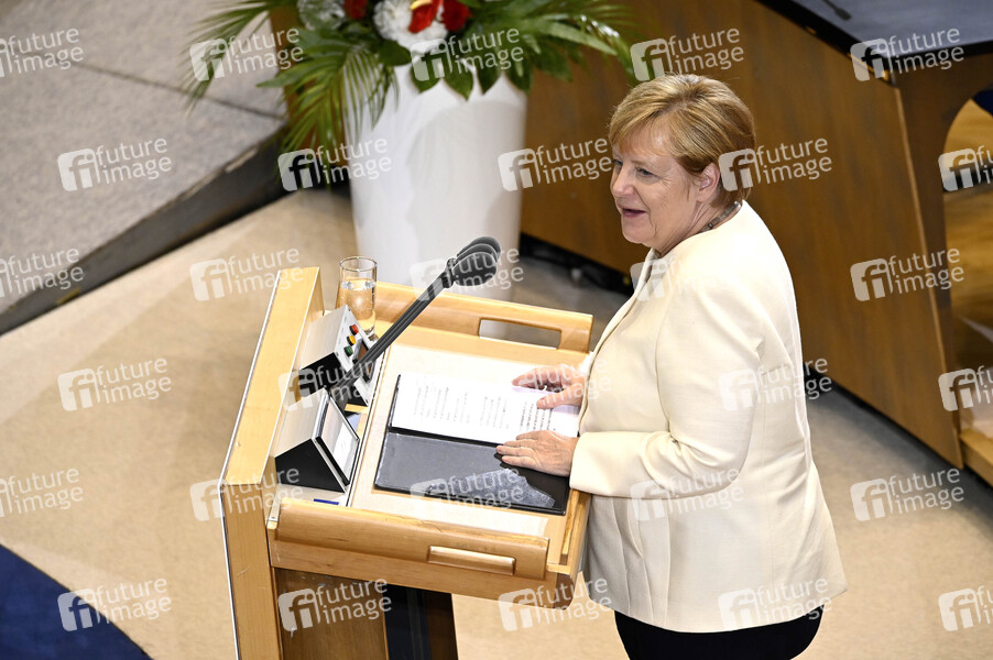 Angela Merkel bei der Verleihung des Staatspreises des Landes Nordrhein-Westfalen 2019 an Klaus Töpfer im WCCB. Bonn, 16.09.2019