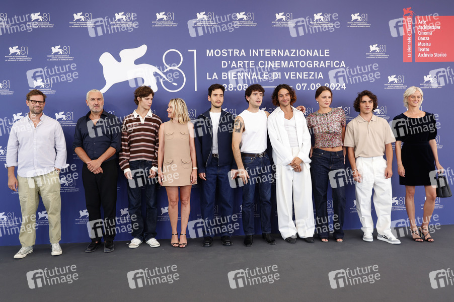 Nicolas Mathieu, Gilles Lellouche, Paul Kircher, Ludivine Sagnier, Ludovic Boukherma, Zoran Boukherma, Sayyid El Alami, Angélina Woreth, Louis Memmi und Christine Gautier beim Photocall zum Kinofilm 'Leurs enfants après eux / And Their Children After Them' auf der Biennale di Venezia 2024 / 81. Internationale Filmfestspiele von Venedig im Palazzo del Casino. Venedig, 31.08.2024