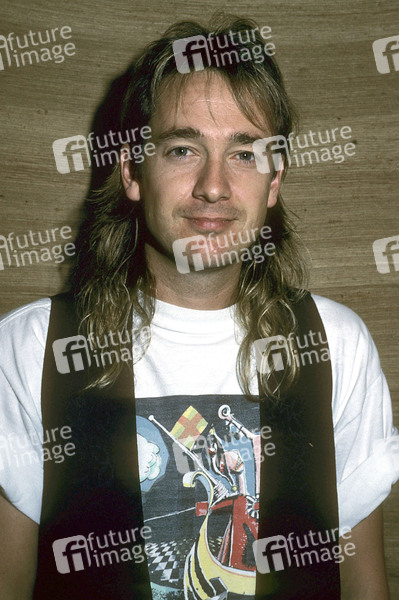 Adrian Smith von Iron Maiden bei einem Photoshooting bei seiner Plattenfirma. London, 02.08.1990