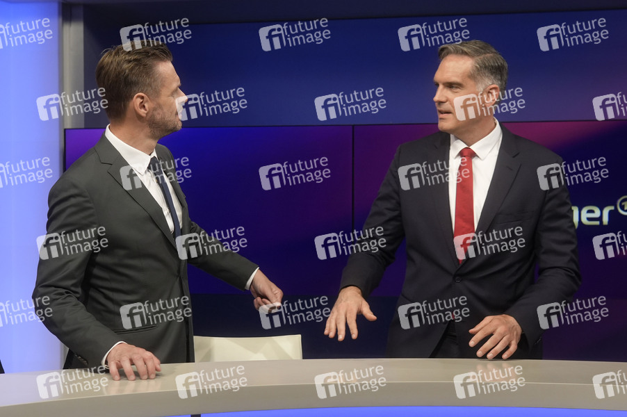 Florian Schroeder und Frederik Pleitgen in der ARD-Talkshow 'maischberger' im Studio Berlin Adlershof. Berlin, 03.06.2025