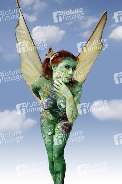 Bodypainting und Fotoshooting mit Model Nadine auf dem 'Tag des offenen Gartens' in Stadthagen-Niedernwöhren. Künstler: Jörg Düsterwald