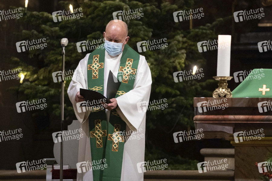 Der karnevalistische Gottesdienst fand unter 3G-Bestimmungen in der Severikirche auf dem Erfurter Domberg statt. Pfarrer Michael Neudert, gab den Karnevalisten, einschließlich den Prinzenpaaren Christian II. und Verena II. und den Kindern Luca I. und Noelanie I. den Segen für die anstehende Kampagne. (Personen im Bild: v.l. Pfarrer Michael Neudert). Erfurt, 16.01.2022