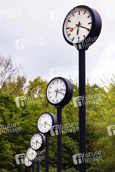Uhren der Installation 'Zeitfeld' von Klaus Rinke. Düsseldorf, 05.08.2019