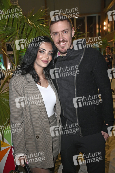 Max Kruse mit Ehefrau Dilara Kruse bei der Premiere des TV Realityformats 'Promis unter Palmen' im BeachMitte. Berlin, 10.02.2025