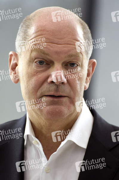 Olaf Scholz bei einem Statement nach einem Unternehmensbesuch bei der Merk KGaA im Innovation Center. Darmstadt, 26.08.2021