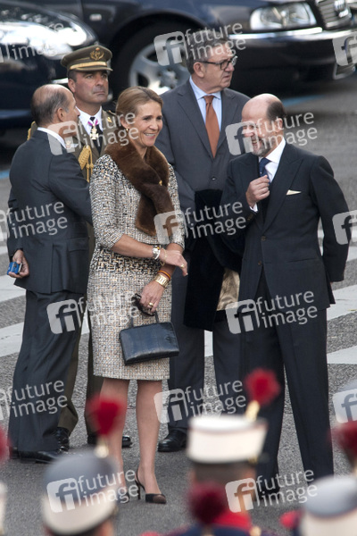 Die spanische Königsfamilie bei der Hommage an die Nationalflagge mit Militärparade am Palacio Real, Madrid