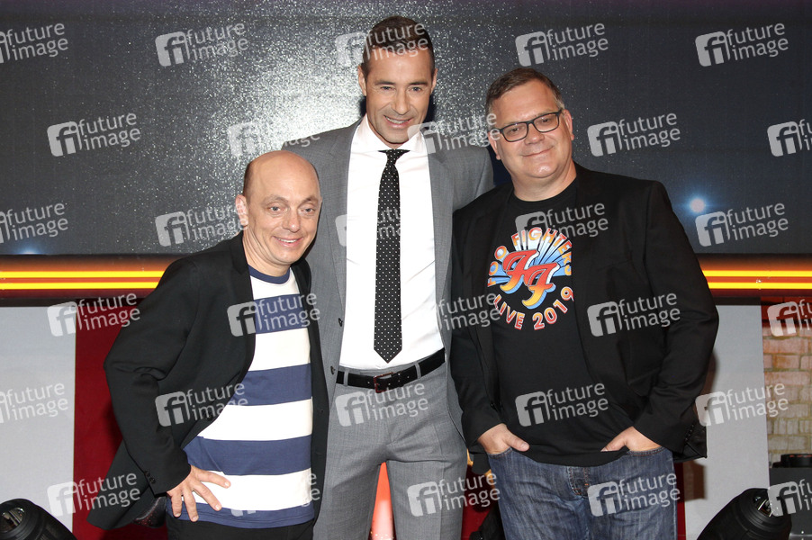Bernhard Hoecker, Kai Pflaume und Elton bei der Aufzeichnung der ARD-Quizshow 'Wer weiß denn sowas? XXL' im Studio Hamburg. Hamburg, 24.06.2019