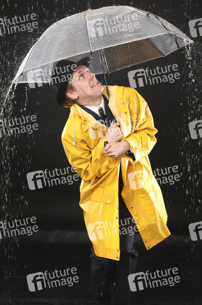 Fotoshooting, Unterhaltung, Entertainment, Kultur, Singin' in the Rain, Singing in the Rain, Musical, Regen, Wetter, Regenschauer, Nieselregen, Platzregen, Niederschlag, Gewitter, Wasser, Wetterprognose, Wettervorhersage, Regenschirn, Schirm, Regenjacke, Südwester, Regenkleidung, Regenwetter, Symbolbild, Symbolfoto