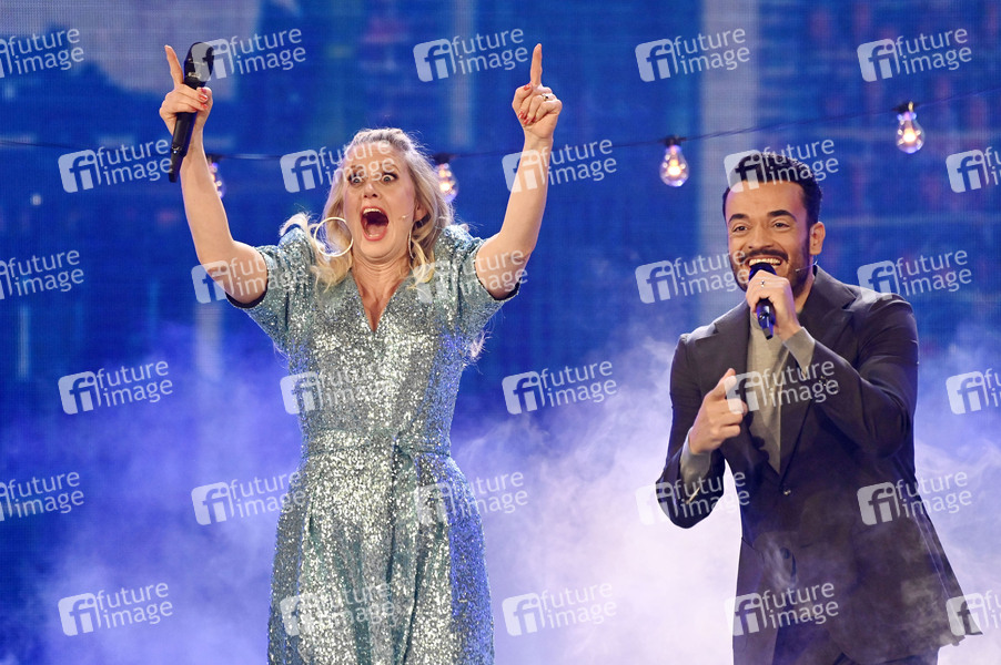 Barbara Schöneberger und Giovanni Zarrella in der ARD-Unterhaltungsshow 'Verstehen Sie Spass?' live im Studio H in Berlin-Adlershof. Berlin, 02.04.2022