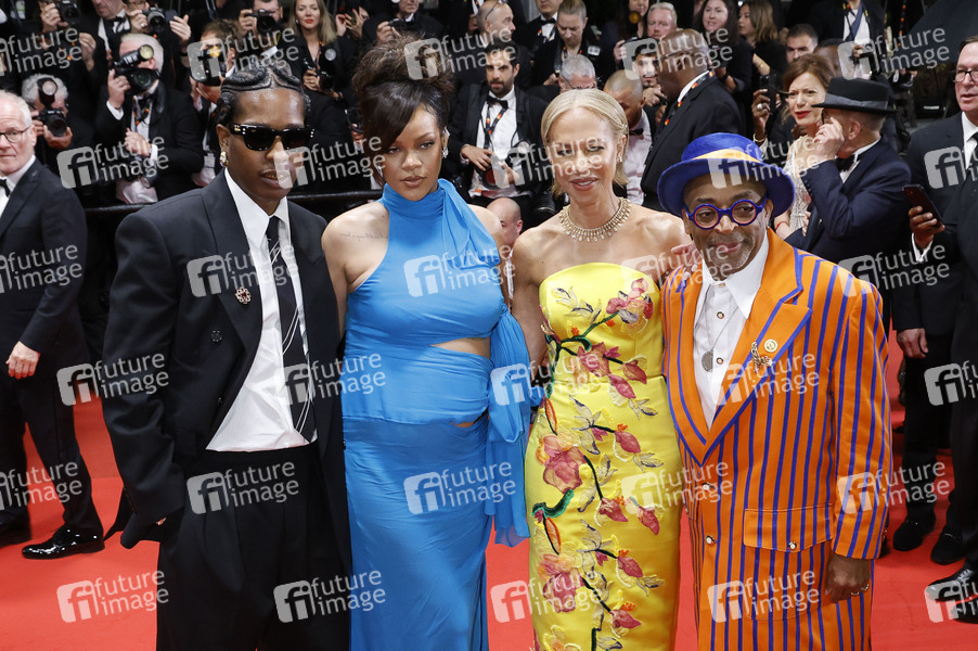 ASAP Rocky, Rihanna, Tonya Lewis Lee und Spike Lee nach der Premiere des Kinofilms 'Highest 2 Lowest' auf dem Festival de Cannes 2025 / 78. Internationale Filmfestspiele von Cannes im Palais des Festivals. Cannes, 19.05.2025
