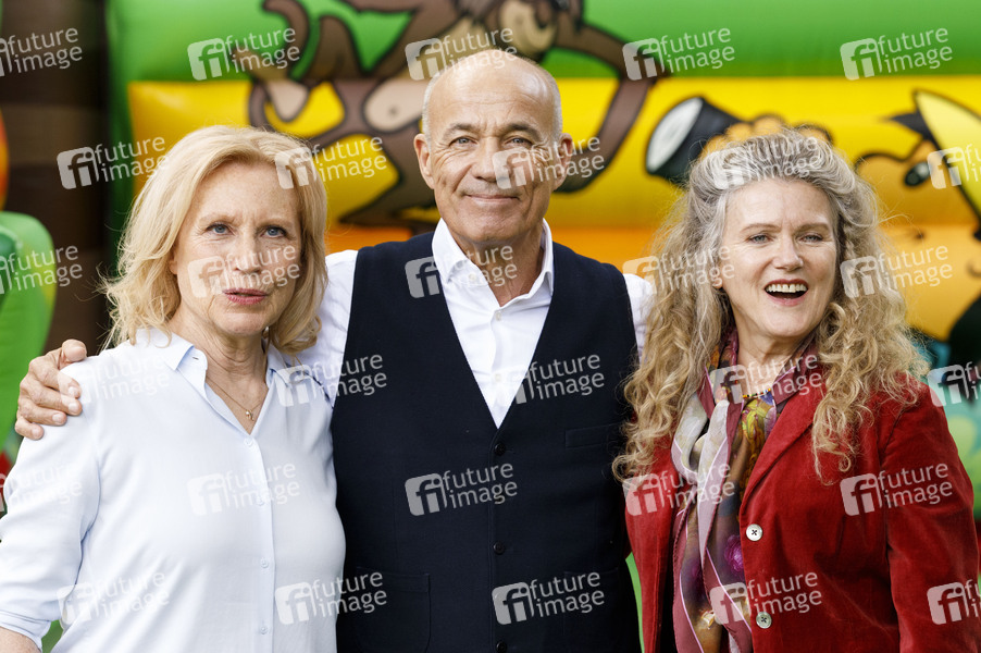 Heiner Lauterbach, Maren Kroymann und Barbara Sukowa beim Fototermin am Set des Kinofilms 'Enkel für Anfänger' am Dellbrücker Mauspfad. Köln, 30.04.2019