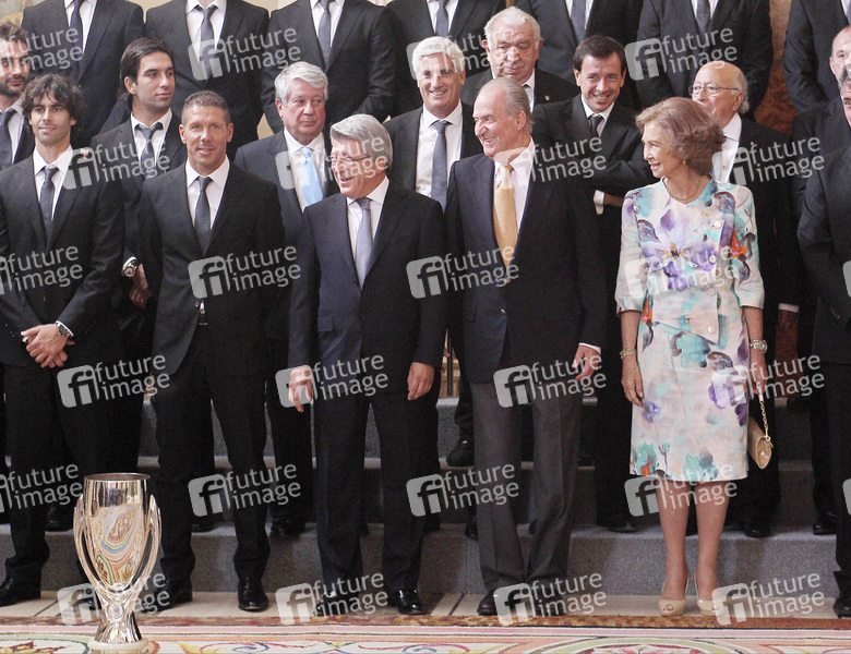 König Juan Carlos und Königin Sophia empfangen Spieler und Funktionäre von Atletio Madrid im Palacio de la Zarzuela, Madrid