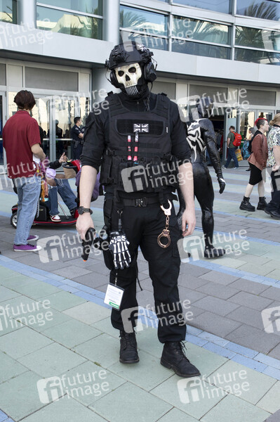 Fan, Fans, Conventionbesucher, Cosplayer, Cosplay, Kostüm, Verkleidung, Fandom, Wonder Con, Convention, Fantreffen, Branchentreffen, Konvent, Kongress, Entertainment, Unterhaltung, Kultur