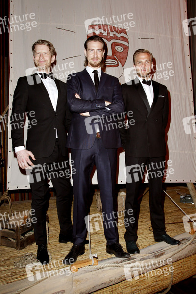 Odd Magnus Williamson, Pal Sverre Valheim Hagen und Tobias Santelmann bei der Filmpremiere des Kinofilms 'Kon Tiki' im Kino International. Berlin, 06.03.2013