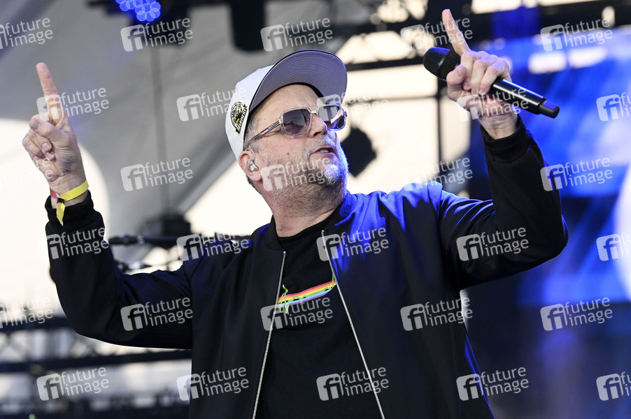 Smudo von Die Fantastischen Vier live bei der Abschlussveranstaltung auf dem Demokratiefest zu 75 Jahren Grundgesetz auf der Bühne zwischen Kanzleramt und dem Deutschen Bundestag. Berlin, 26.05.2024
