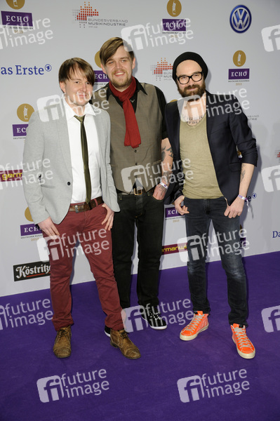 Andreas 'Becks' Becker, Nicholas Mueller und Sascha Eigner (Jupiter Jones) bei der 22. Verleihung vom Musikpreis ECHO 2013 im Palais am Funkturm. Berlin, 21.03.2013