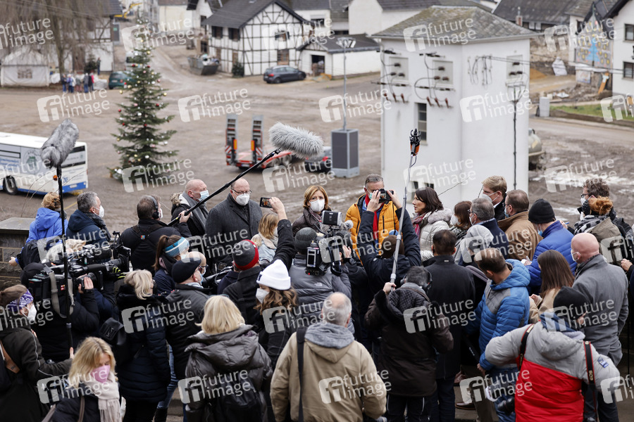 Katrin Eder, Malu Dreyer und Daniela Schmitt besuchen sechs Monate nach der Jahrhundertflut das Ahrtal, um Bestandsaufnahme in der Ortsgemeinde Schuld zu machen. Schuld, 12.01.2022