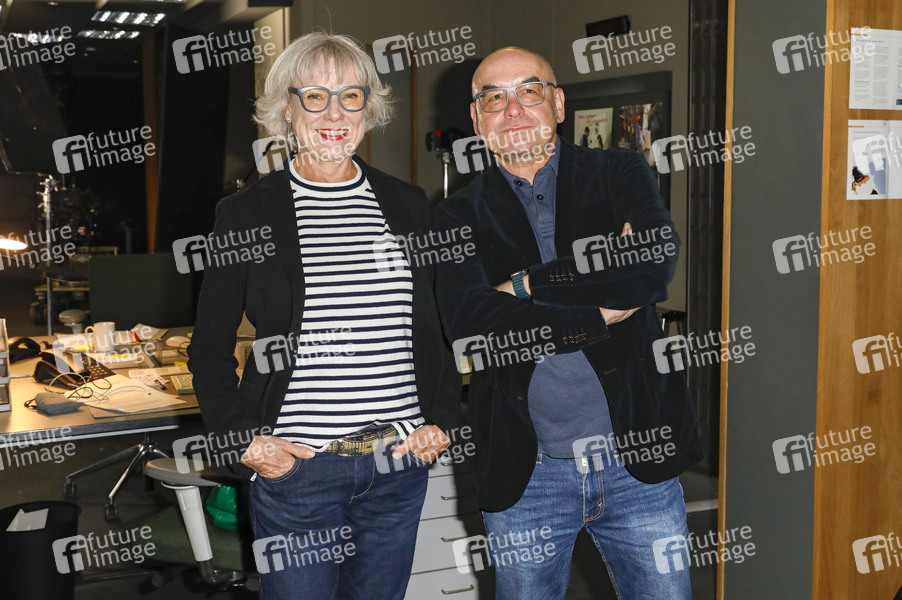 Eva Zahn und Volker Zahn beim Fototermin bei den Dreharbeiten zum ARD-Krimi 'Tatort - Colonius' im Kommissariat-Set in der Max-Planck-Straße. Köln, 26.04.2024