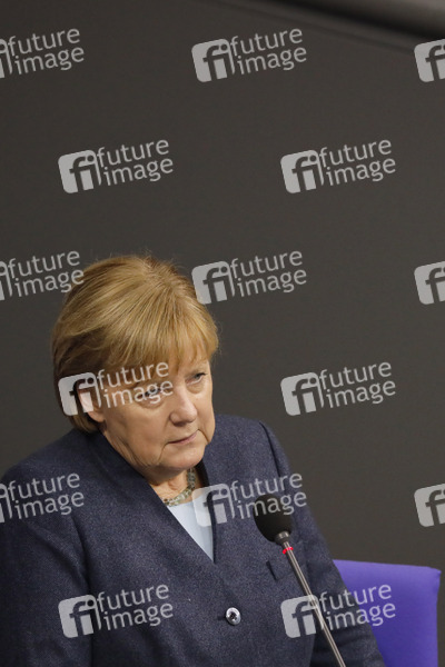 Angela Merkel in der 201. Sitzung des Deutschen Bundestages im Reichstagsgebäude. Berlin, 16.12.2020