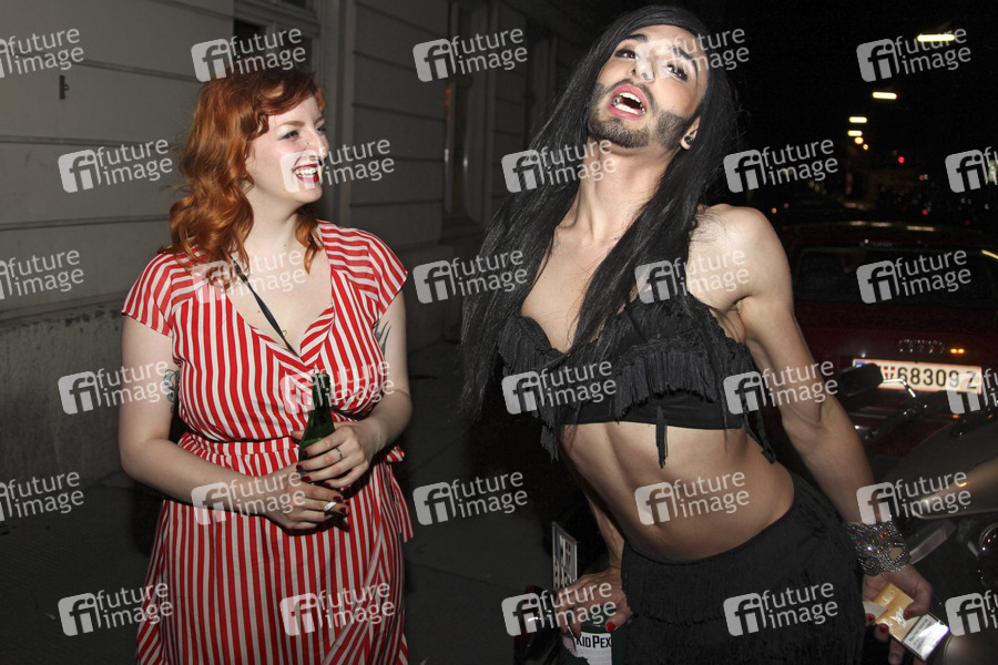 Mitzi May und Conchita Wurst in der Pause der Burlesque Show 'Kitty Revue' in der Arena Bar. Wien, 11.06.2011