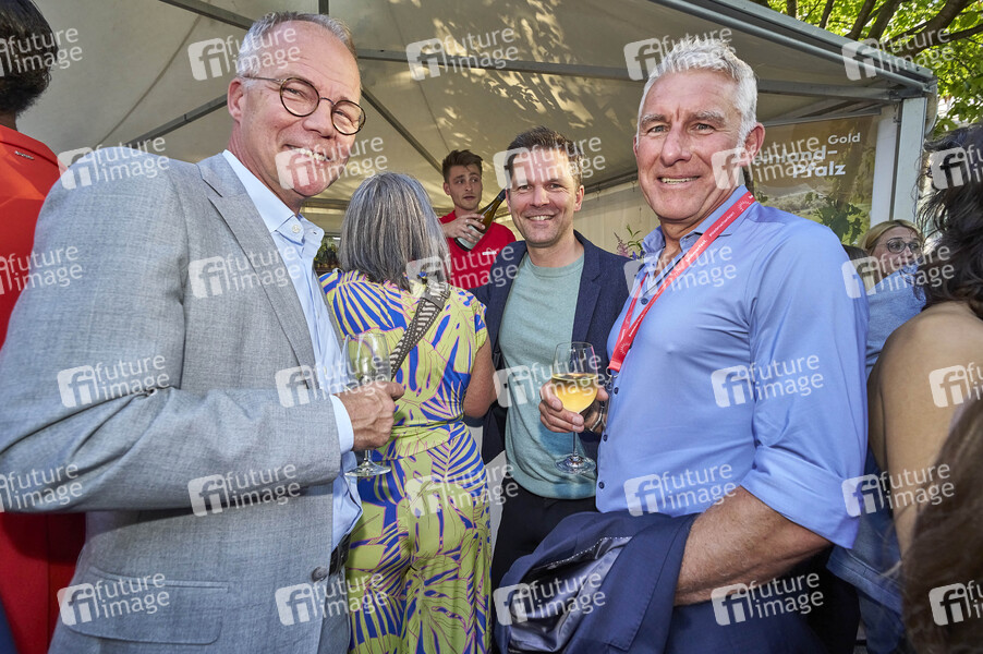 Matthias Miersch, Steffen Krach und Mirko Slomka beim Sommerfest der Niedersächsischen Landesregierung 2024 in der Vertretung des Landes Niedersachsen beim Bund. Berlin, 24.06.2024