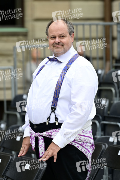 Markus Majowski bei der Generalprobe des Theaterstücks 'Jedermann' bei den Thurn und Taxis Schlossfestspielen im Innenhof des Fürstlichen Schlosses. Regensburg, 26.07.2025