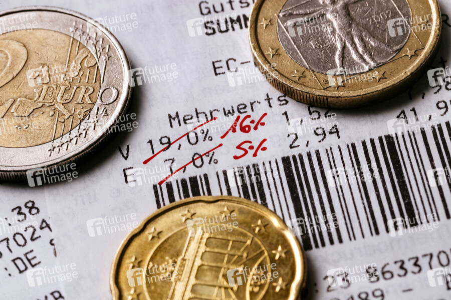 Mehrwertsteuer, Mehrwert, Steuer, Absenkung, Corona, Krise, Coronakrise, Corona-Krise, Mehrwersteuersenkung, Mehrwertsteuer-Senkung, MwSt, Steuersenkung, Umsatzsteuer, USt, Vorsteuerabzug, Umsatzsteuerabzug, Steuern, Steuersatz, Konsumsteuer, 16%, 5%, Prozent, Rechnung, Corona-Maßnahme, Finanzspritze, Wirtschaft, Mehrwertsteuersatz, Mehrwertsteuer Reduktion, Wirtschaftskrise, Stimulus, Kauflaune, Konjunktur, Wirtschaft, Kleingeld, Bon, Quittung, Bonpflicht, Mehrwertsteuerabsenkung, MwSt, Steuererklärung, absetzen, von der Steuer absetzen, Belegpflicht, MwSt-Senkung, Münzen, Kassenzettel, Verbraucherpreise, Lebenshaltungskosten, Kauflust, Konjunkturpaket, temporäre Mehrwertsteuersenkung, Steuersatz, Mehrwertsteuersatz, Steuerentlastung, Steuerbelastung, Lebensmittelpreise, Preise, Verbraucherpreise, Symbolbild, Symbolfoto