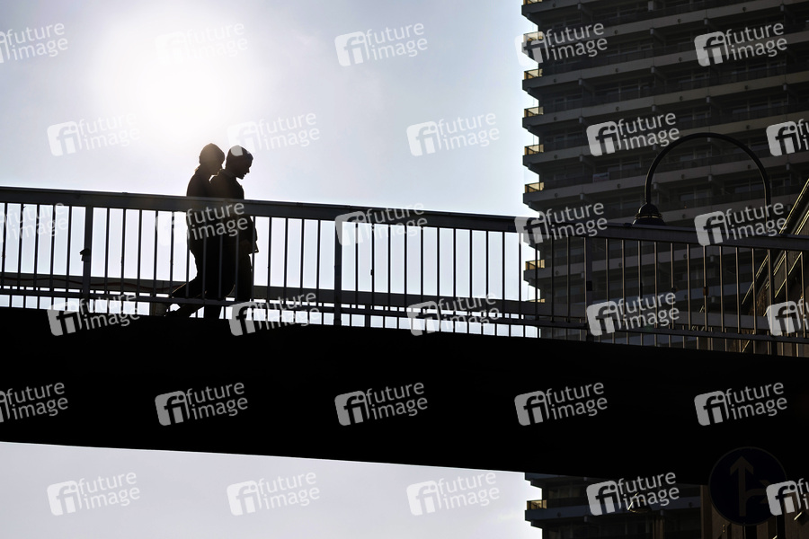 Passanten überqueren eine Fußgängerbrücke. (Symbolbild, Themenbild) Köln, 12.11.2020