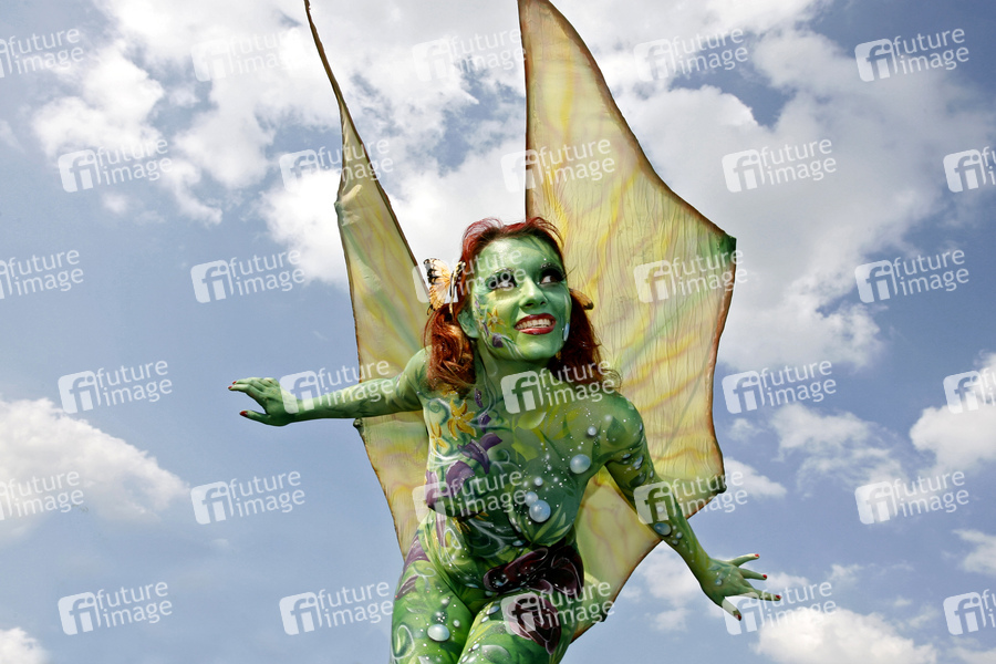 Bodypainting und Fotoshooting mit Model Nadine auf dem 'Tag des offenen Gartens' in Stadthagen-Niedernwöhren. Künstler: Jörg Düsterwald