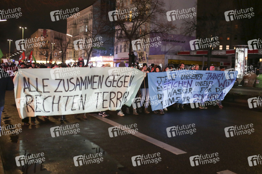 Demonstration, Polizei, Antifa, Hanau, Rechtsextremismus, Hermannplatz, Berlin, Neukölln, Sonnenallee, Demonstranten. Protest, Demo, Gedenkveranstaltung, Politik
