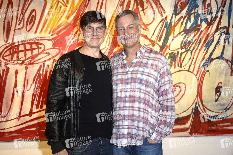 Thomas Hermanns mit Ehemann Wolfgang Macht bei der Eröffnung der Alexander Höller Ausstellung 'F*CK THEM' in der Galerie Schmalfuss. Berlin, 19.08.2021