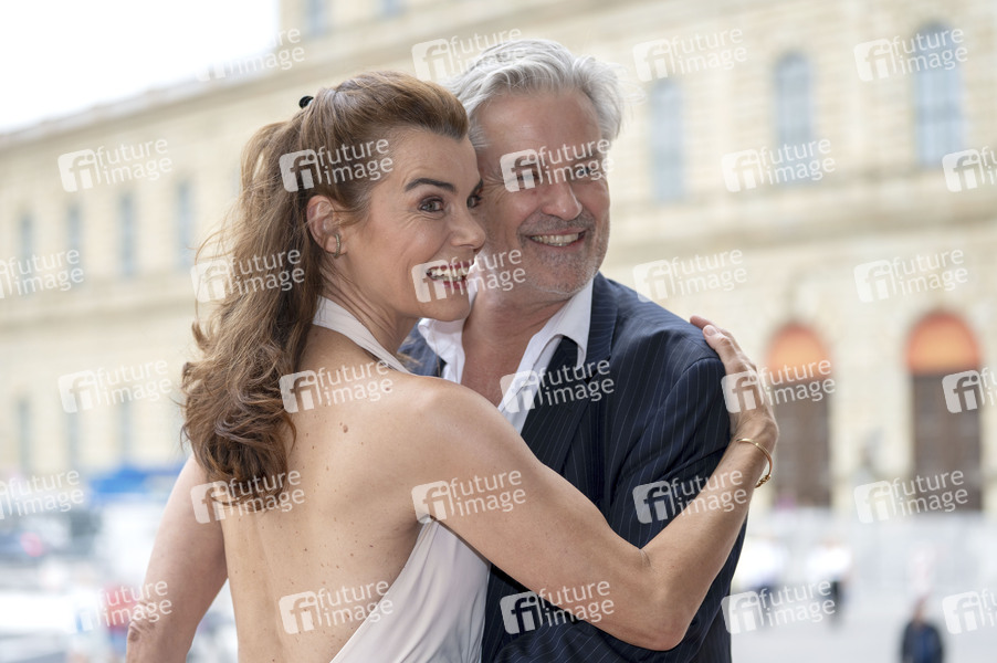 Nicola Tiggeler und Timothy Peach bei der Ankunft zum Event 'Oper für alle 2025' im Rahmen der Münchner Opernfestspiele im Nationaltheater mit der Live-Opernübertragung von Wolfgang Amadeus Mozarts 'Don Giovanno' auf dem Max-Joseph-Platz. München, 06.07.2025