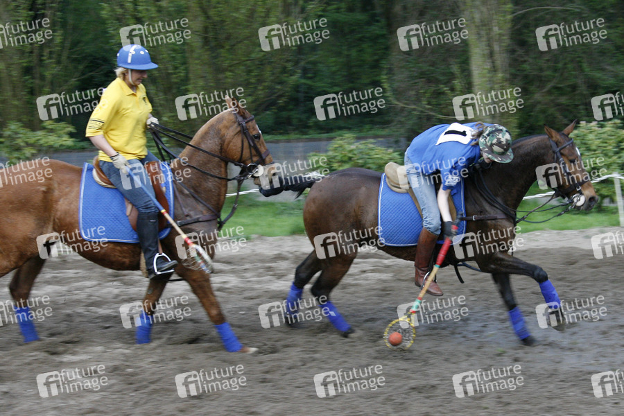 Sportlerinnen, Reiterinnen, Tiere, Pferde, Polocrosse ist eine Kombination von Polo und Lacrosse