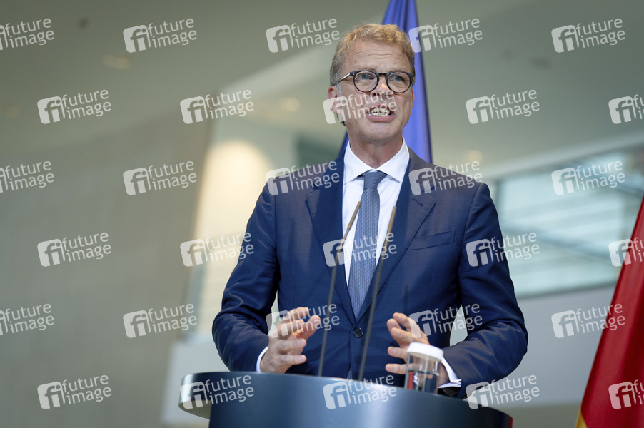 Christian Sewing bei der Pressekonferenz zur 'Made for Germany' Initiative im Bundeskanzleramt. Berlin, 21.07.2025
