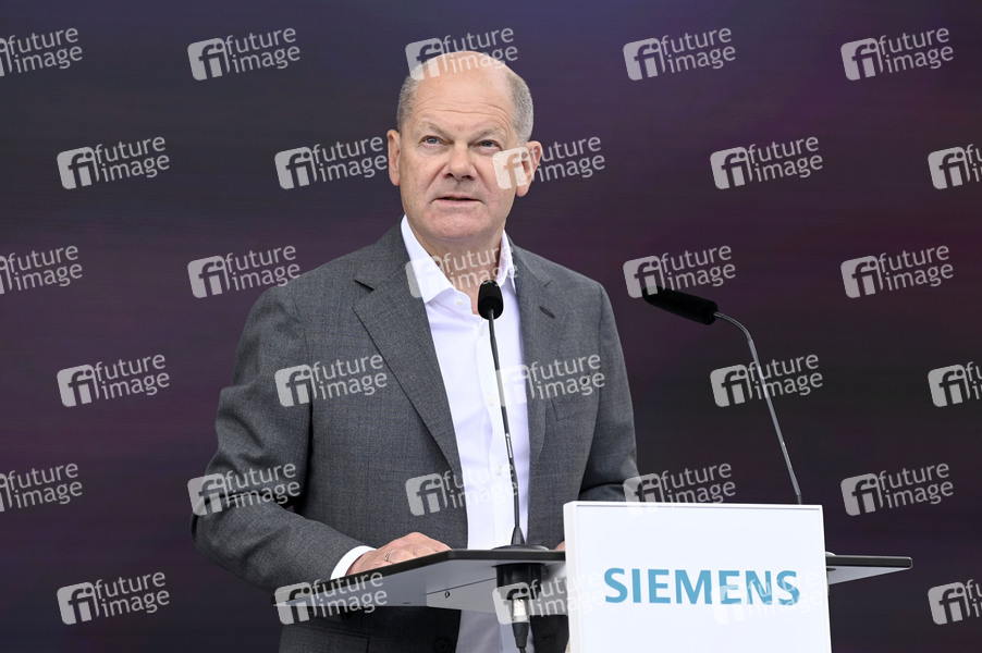 Olaf Scholz bei der Grundsteinlegung für das zukünftige Quartier Siemensstadt Square am Rohrdamm. Berlin, 25.06.2024