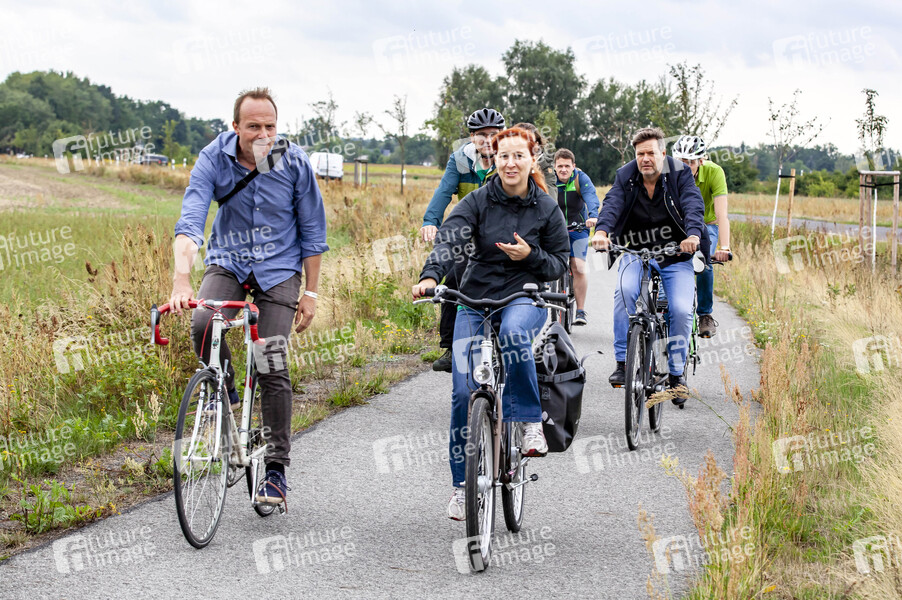 Franziska Schubert und Robert Habeck bei einer Fahrradtour im Rahmen einer Wahlkampfveranstaltung von Bündnis 90/Die Grünen zur Landtagswahl in Sachsen 2019 durchs Dubringer Moor nach Wittichenau und Spohla. Hoyerswerda, 19.08.2019