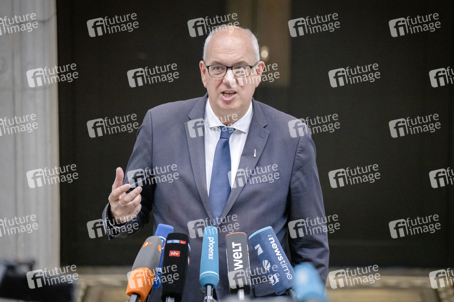Andreas Bovenschulte beim Pressestatement am Rande der 1056. Sitzung des Bundesrates im Plenarsaal des Preußischen Herrenhauses. Berlin, 11.07.2025